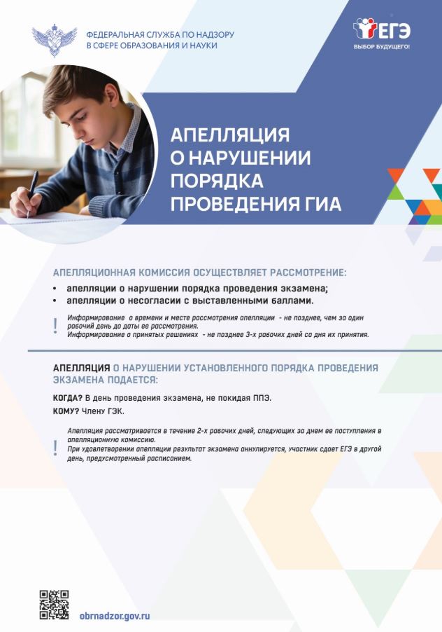 Актуализированная информация о датах подачи и рассмотрения апелляций будет размещаться на портале http://ege.edu07.ru
